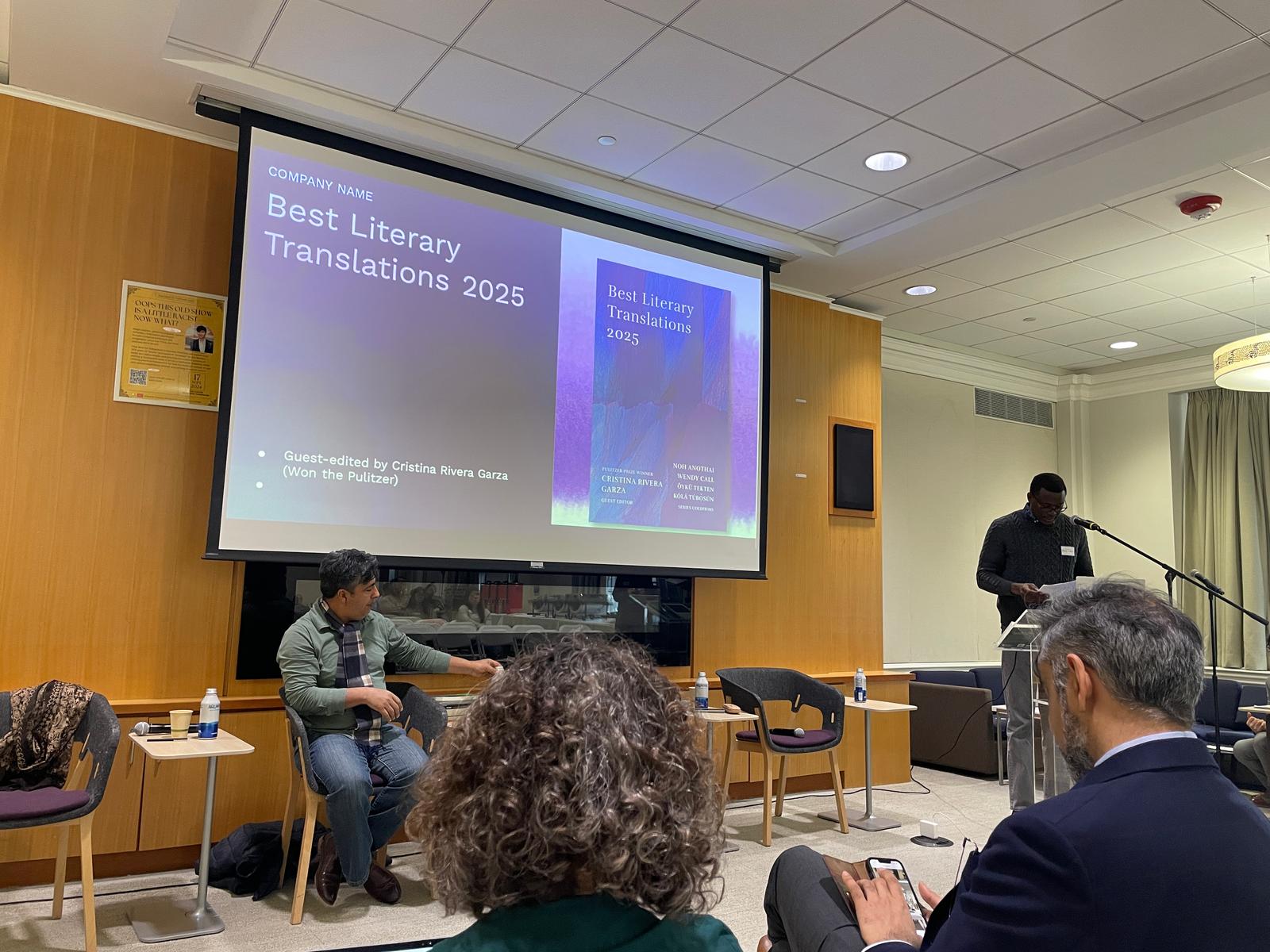 I’m a writer, the co-editor of Best Literary Translations, now in its third year. There are copies of the book for sale if you’re interested in them. The 2025 edition will be out at the end of this month, guest-edited by Cristina Rivera Garza, but we have copies here.